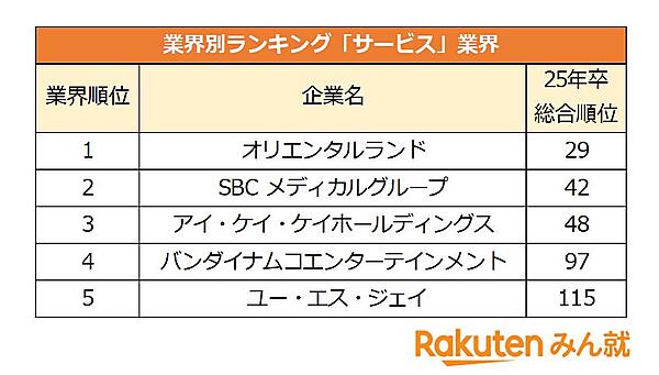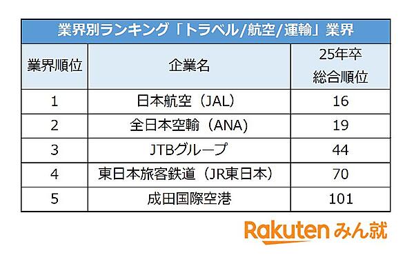 業界別で見ると、トラベル/航空/運輸業界は「日本航空(JAL)」「全日本空輸(ANA)」「JTBグループ」がトップ3に。サービス業界は「オリエンタルランド」「SBCメディカルグループ」「アイ・ケイ・ケイホールディングス」がトップ3となるなど、コロナ禍での低迷からの回復で、いずれも人気の上昇をうかがわせた。