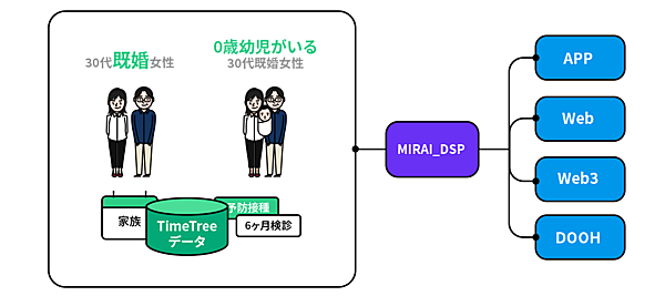 デジタルマーケティングサービス事業のデジタル・アドバタイジング・コンソーシアム(DAC)と、カレンダーシェアアプリ企画・運営のTimeTreeは、同社の同アプリ「TimeTree」を活用した広告配信サービス「MIRAI_DSP」を共同で始めた、と10月4日発表した。ユーザーの未来の予定に関するデータを利用して精度の高いターゲティングを可能にする。