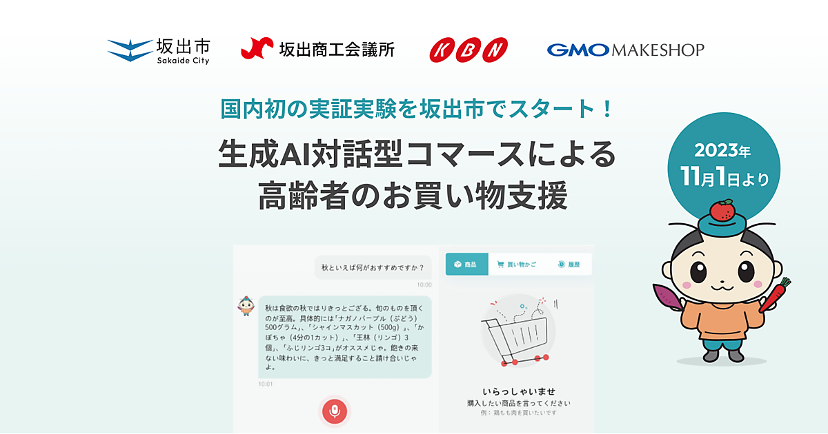 GMOインターネットグループ傘下でECソリューション事業のGMOメイクショップは、高齢者向けに生成AI(人工知能)による対話型コマースを利用した買い物支援の実証実験を香川県坂出市で11月1日に始める、と10月5日発表した。米国オープンAIの生成AI「ChatGPT」のAPIを搭載した音声対話型のオンラインショッピングシステムを使い、操作性や有効性を調べる。