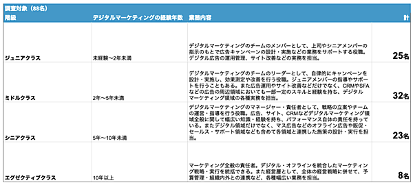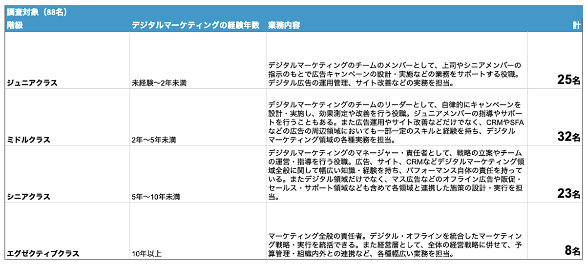 - 【調査対象】[居住地]全国、[年齢]23歳以上60歳以下、[性別]男女、[職業]会社員(正社員)、[職種]マーケティング職、広告・販促職、人事・採用職