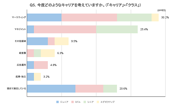 マーケティング職、広告・販促職の88人に「今後のキャリア」について聞くと、“広告運用以外のマーケティング領域でのキャリア”もしくは“現状に満足”という傾向が強かった。