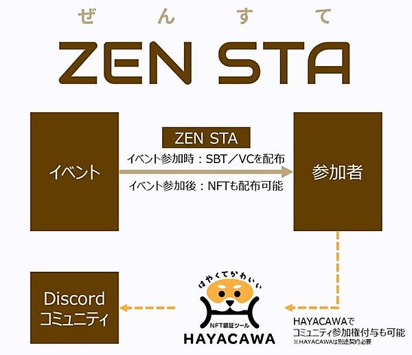 ZEN STAは、イベントの回遊促進やイベント後のコミュニティ形成などのマーケティング活動を支援するサービス。参加した証明を主催者側からSBTやVCなどのデジタル参加証としてワンタイムQRコードやURLから配布する仕組みとなる。参加証明でNFTを配布するケースが増えているものの、NFTは譲渡や売買が可能なため、譲渡できないSBTやVCを配布する。