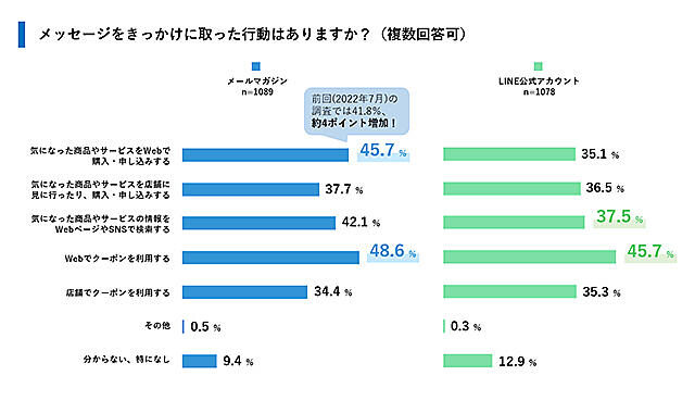 - 【調査対象】全国20歳以上の男女で、企業やブランド、店舗などのメルマガを登録している、またはLINE公式アカウントを登録している人