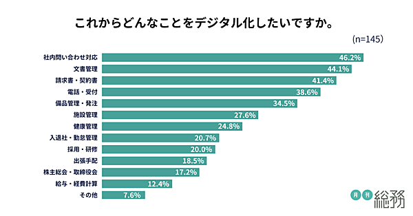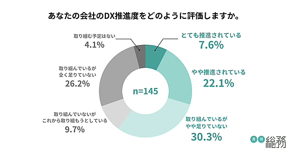 月刊総務は、「総務のDX」に関する調査結果を発表した。全国の総務担当者145人がアンケートに回答している。前回調査は2022年4月。