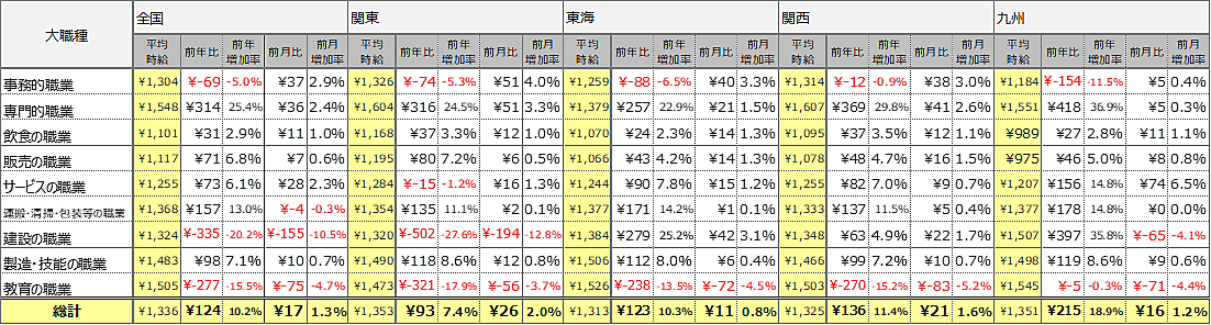 関東・東海・関西・九州すべてのエリアで過去最高時給を更新