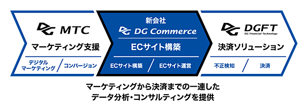 インターネット関連事業のデジタルガレージ(DG)は、決済事業を手がける子会社のDGフィナンシャルテクノロジー(DGFT)と、EC事業のシステムインテグレータ(SI)との共同出資で「DGコマース」を12月に設立する、と11月9日に発表した。決済とデータを融合したDGのグループ戦略「DGフィンテックシフト」の事業基盤を強化する新会社で、ECサイト構築とシステム運用サポートを軸に、ECビジネスをテクノロジーで支援する。