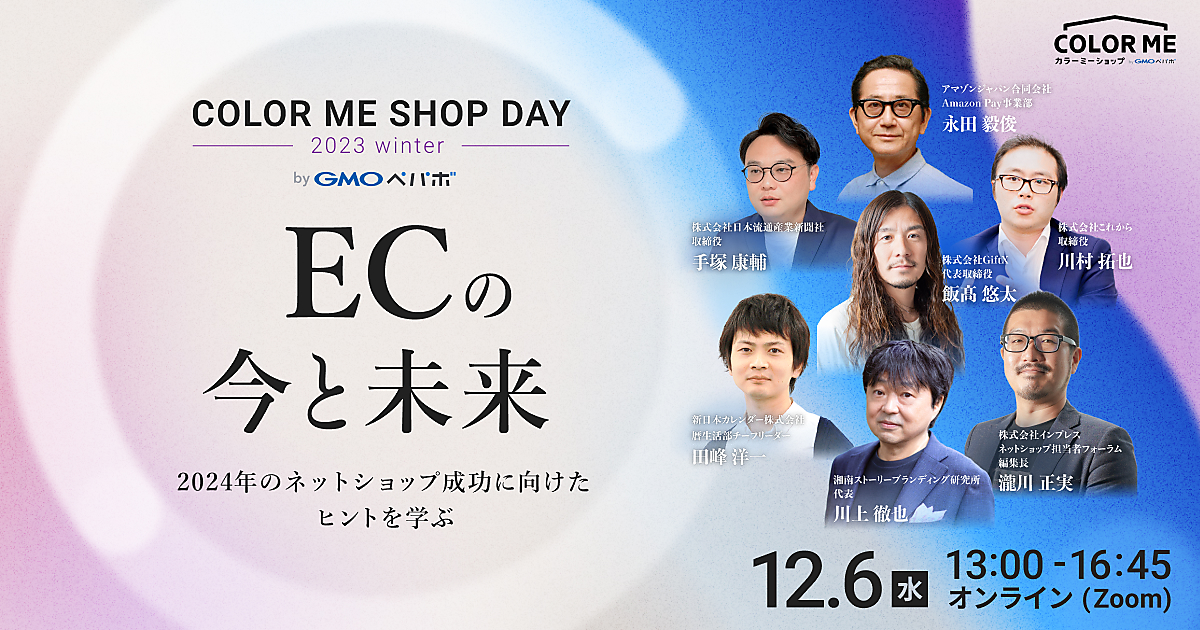カラーミーショップ byGMOペパボはネットショップ運営者を対象にしたオンライントークイベント「COLOR ME SHOP DAY 2023 Winter」を12月6日(水)に開催する。