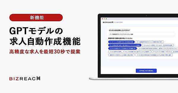 転職サイト大手のビズリーチは、転職サイト「ビズリーチ」の新機能「GPTモデルの求人自動作成機能」を開発した、と11月20日に発表した。採用企業向けに求人の作成をサポ―トする機能で、採用企業はGPTツールを活用することで、最短30秒で高精度な求人が自動で提案される。多数の求人を掲載中の企業から段階的に利用を広げ、先行利用企業のフィードバックをもとに開発を進めて2024年度中に全企業が利用可能となる予定。