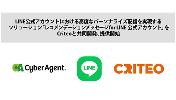 LINE公式アカウントを運用する企業・ブランドは、「友だち」に追加したユーザーの維持(リテンション)が難しい。Criteoはこの課題を解決する配信ソリューションをLINEヤフーのLINEテクノロジーパートナーと提携して各社に提供してきたが、新たにサイバーエージェントと提携して展開を加速する。企業・ブランドはユーザーとのエンゲージメント(関与)を強化し効率のいいコンバージョン(顧客転換)の向上が期待できる。