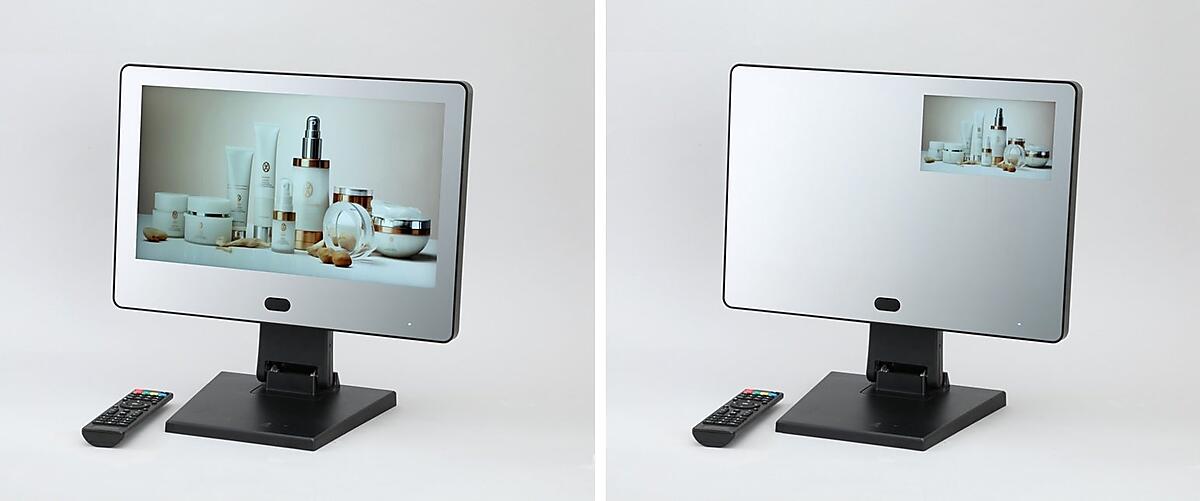 セールスプロモーション(SP)関連事業のワヨーは、店舗の売り場で人を感知して映像コンテンツと鏡を自動的に切り替えるデジタルサイネージ用モニター「ミラーモニター」を11月27日に発売した、と11月28日発表した。商品の選択・購入で鏡が必要な衣料品、化粧品、眼鏡などの売り場で販促効果が期待できるという。モニターのサイズは15.6インチ。