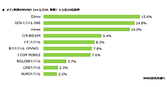 また契約している通信サービス別にみると、「iPhone」はオンライン専用プラン(n=3,264)がもっとも多く61.9%、次いでキャリアサブブランド(n=6,196)55.7%だった。「Android」はMVNO(n=3,365)がもっとも多く63.0%だった。