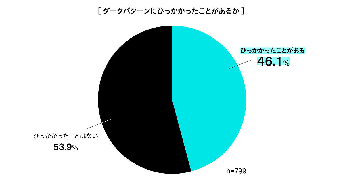 46.1%の人が「ダークパターン」にだまされたことがある