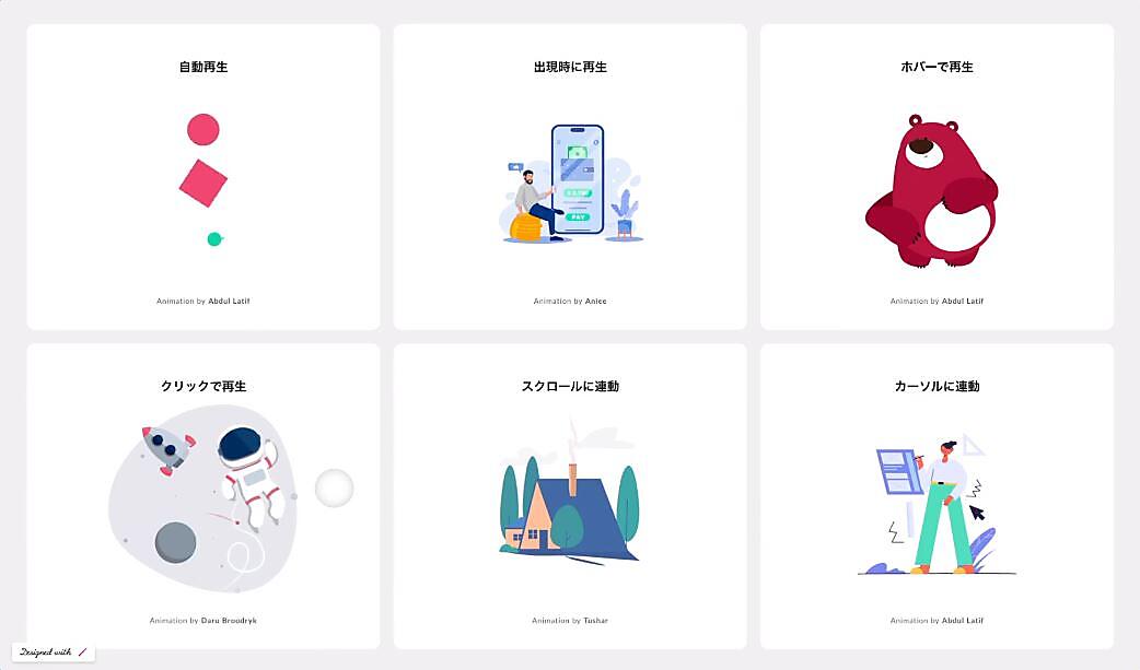 今回STUDIOがLottieアニメーションをサポートしたことで、ホバー(カーソルを合わせた時の変化)、クリック、スクロールとの連動といったLottieアニメーションのインタラクティブな設定で通常必要なHTMLやJavascriptでのプログラミングが不要になる。ノーコードで直感的な操作によって設定できる。