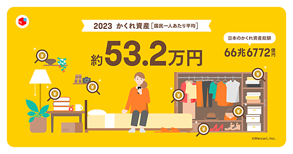 その結果、“日本の家庭に眠るかくれ資産”の総額は「推計約66兆6,772億円」。日本の人口で割り戻すと、国民一人あたり平均“かくれ資産”は「約53.2万円」となった。
