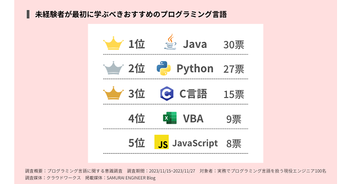 初心者におすすめなのは「Java」、副業収入アップは「Python」