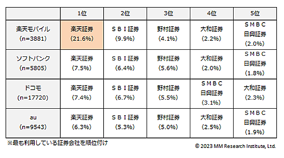 なお2023年8月の調査のため、証券業に参入していなかったドコモはクロスユース率算出から除外されている。NTTドコモは10月4日にマネックス証券と資本業務提携を発表済み。