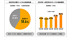 まず、2023年の冬ボーナスの支給有無を聞くと、「支給あり」が67.9%となった。「支給あり」の推移としては、2019~2022年までは微増が続いていたが、2023年は約6ポイント増加で67.9%と過去最高を記録した。