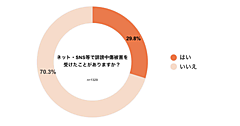 回答者全体に対し、これまでに誹謗中傷を受けたことがあるかを聞くと、「ある」は34.7%にのぼった。