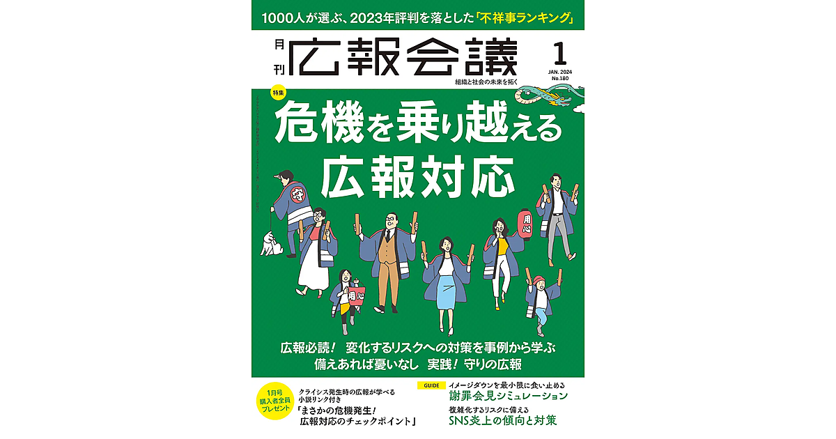 宣伝会議が発行する広報・メディア対応の専門誌『広報会議』は、「不祥事ランキング2023」を発表した。全国1000人の20~60代男女が「イメージが悪化した出来事」を回答している。詳細は『広報会議』2024年1月号(2023年12月1日発売)に掲載された。