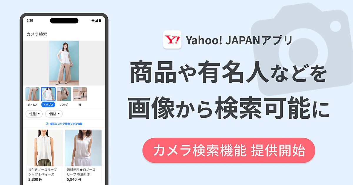 LINEヤフーは、同社が展開する「Yahoo! JAPAN」アプリの「iOS版」「Android版」で、画像から似ている商品や人物などが検索できる「カメラ検索機能」の提供を始めた、と1月18日発表した。文字入力が不要で、画像から気になる物の検索が可能。Android版のアプリ「Yahoo!ブラウザー」のカメラ検索機能をYahoo! JAPANアプリにも導入した。