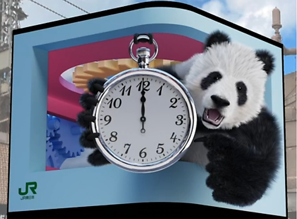 JR東日本グループの「Beyond Stations構想」に基づくメディア開発第1弾。自社開発の屋外型サイネージでは最大級で初の曲面となる。10分間のロール放映で、上野の象徴でもあるパンダを活用した時報コンテンツを毎時00分に、1分30秒おきにもパンダを活用したオリジナルコンテンツを放映。時報コンテンツはjeki初のコラボ商品として販売する。