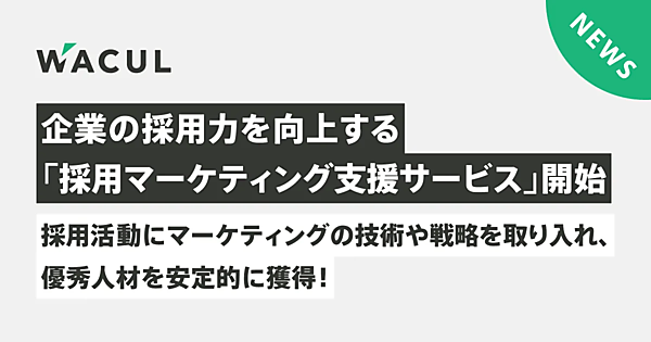マーケティングDX(デジタル変革)支援事業のWACUL(ワカル)は、企業の人事部門が対象の「採用マーケティング支援サービス」を始める、と2月1日発表した。採用活動にマーケティング技術を取り入れ、採用市場の変化に適応することで、優秀な人材の採用を可能にする。採用戦略の策定からウェブサイトの構築、広告運用の代行、採用広報まで提供する。