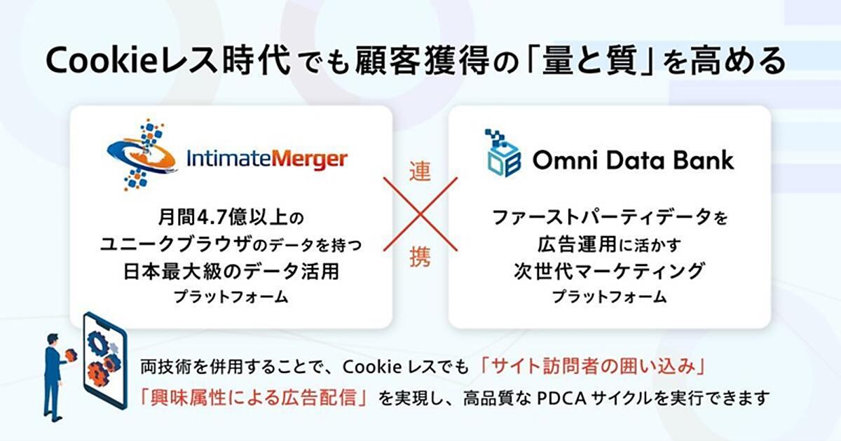 データマネジメントプラットフォーム(DMP)事業のインティメート・マージャー(IM)と、マーケティングDX(デジタル変革)支援事業のログラフは、Webサイトへの再訪を促すリターゲティング広告サービス「IM-ODB Connect」の提供を2月8日から共同で始めると発表した。ポストCookie時代に対応した広告サービスを共同開発した。データ収集からリターゲティング広告の配信・運用まで一気通貫で行うことができる。