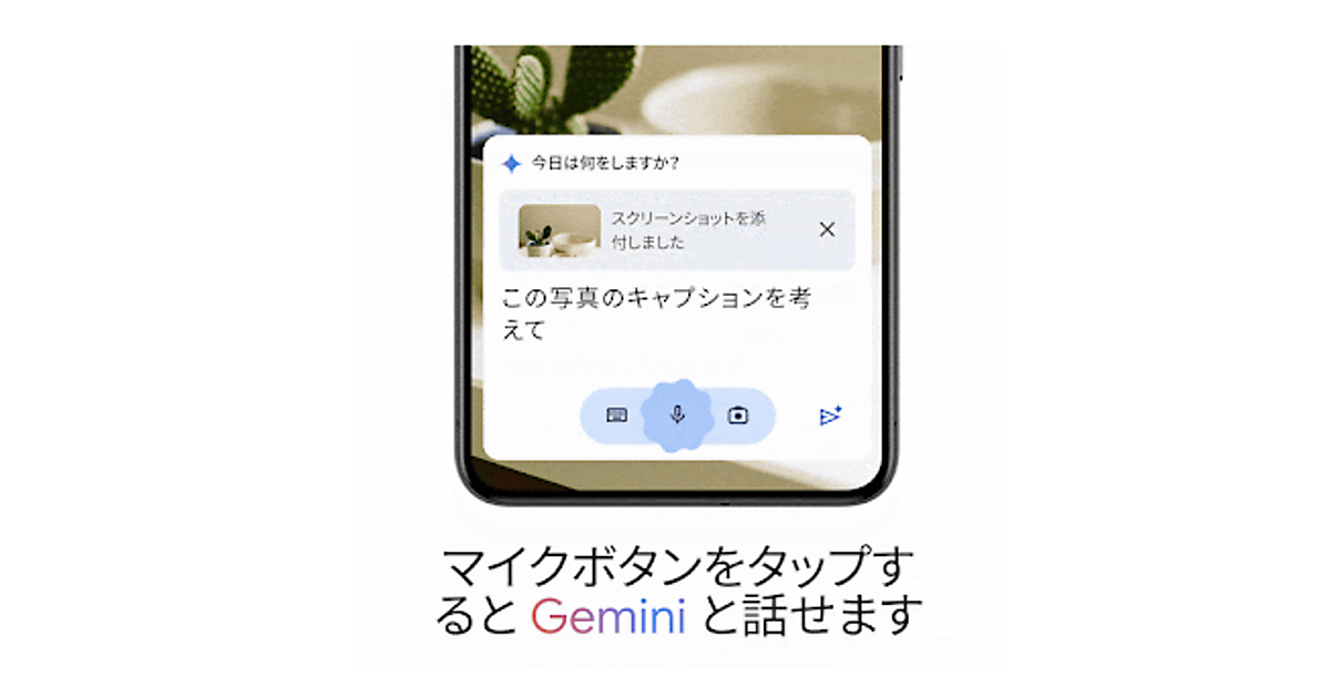 スマートフォンからGeminiに簡単にアクセスしたいという要望を受けて、「Android」で新しいGeminiアプリ、「iOS」のGoogleアプリでGeminiとGemini Advancedを提供する(英語版のみ)。外出先でのテキストや画像での質問、会話ができ、パンクしたタイヤを撮影して対処方法を検索したり、メッセージの返答の作成を支援したりできる。