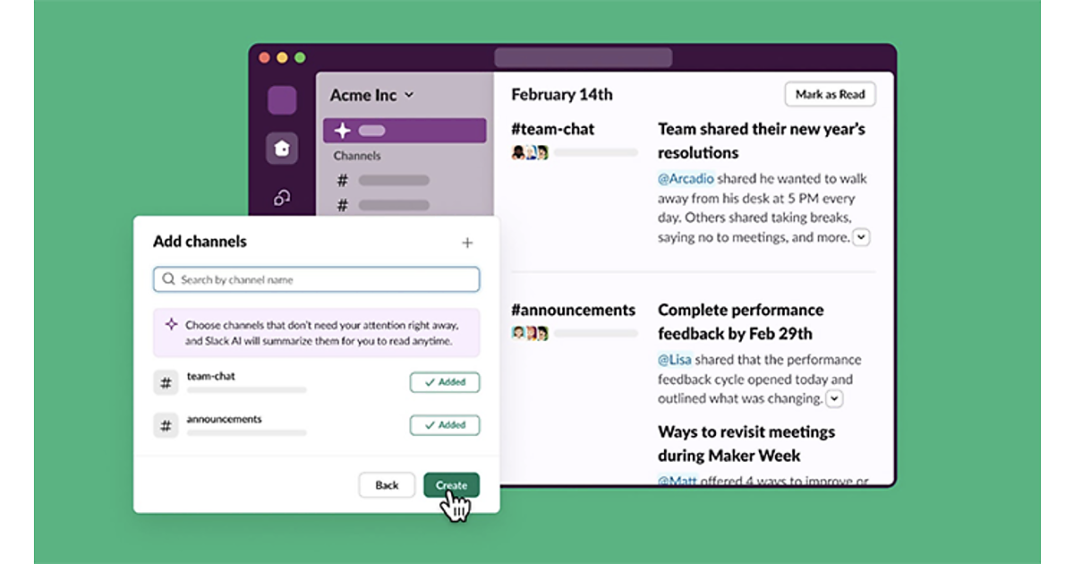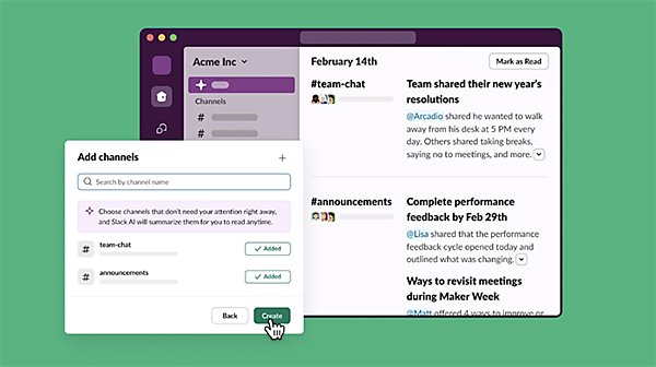 CRM(顧客管理)ソリューション事業の米国Salesforceの日本法人、セールスフォース・ジャパンは、ビジネス用チャットツール「Slack」で生成AI(人工知能)をネイティブ統合した機能「Slack AI」の一般提供を米国と英国で始めたことを米国本社が2月14日に発表した、と2月15日公表した。日本では4月の提供開始を予定している。