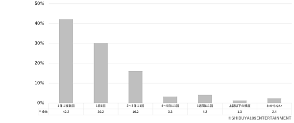 まず「ふだん時事ネタやニュースに触れる頻度」を聞くと、「1日複数回」42.2%が最多で、「1日1回」30.2%と合わせ、7割以上が毎日なんらかの形でニュースに触れていた。