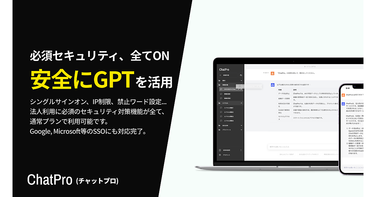 SSOは、IDとパスワードを一度入力すれば複数のサービスにログインできる仕組みで、一度認証を受ければ他のサービスで追加の認証は不要になる。生成AIに社内データを学習させて社内情報の検索を効率化したり、社内ヘルプデスクを便利にしたりできるChatProの「追加学習」機能を導入している企業や自治体から寄せられた「Google WorkspaceによるSSO認証をサポートしてほしい」という要望に応えた。