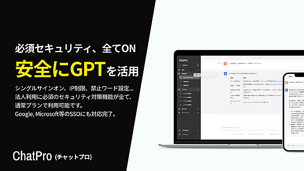 企業向け「ChatGPT」サービス「ChatPro(チャットプロ)」を提供するナレッジセンスは、セキュリティ機能でGoogleのSSO(シングル・サイン・オン)認証に正式対応した、と2月22日に発表した。社内データを生成AI(人工知能)に学習させる「追加学習」機能を利用し、高度なセキュリティ設定が求められる行政や法人から要望が多かった認証方法に対応した。これまで「Microsoft EntraID」と「SAML認証方式」に対応していた。