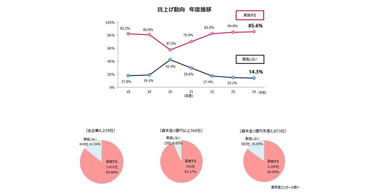企業の賃上げ実施予定率は85.6%、調査開始以来過去最高を更新