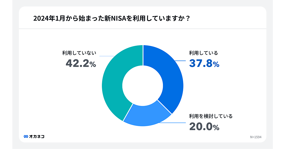 400Fが運営する家計診断・相談サービス「オカネコ」は、「新NISAの利用意向」に関する調査結果を発表した。オカネコのユーザー1,594人がアンケートに回答している。