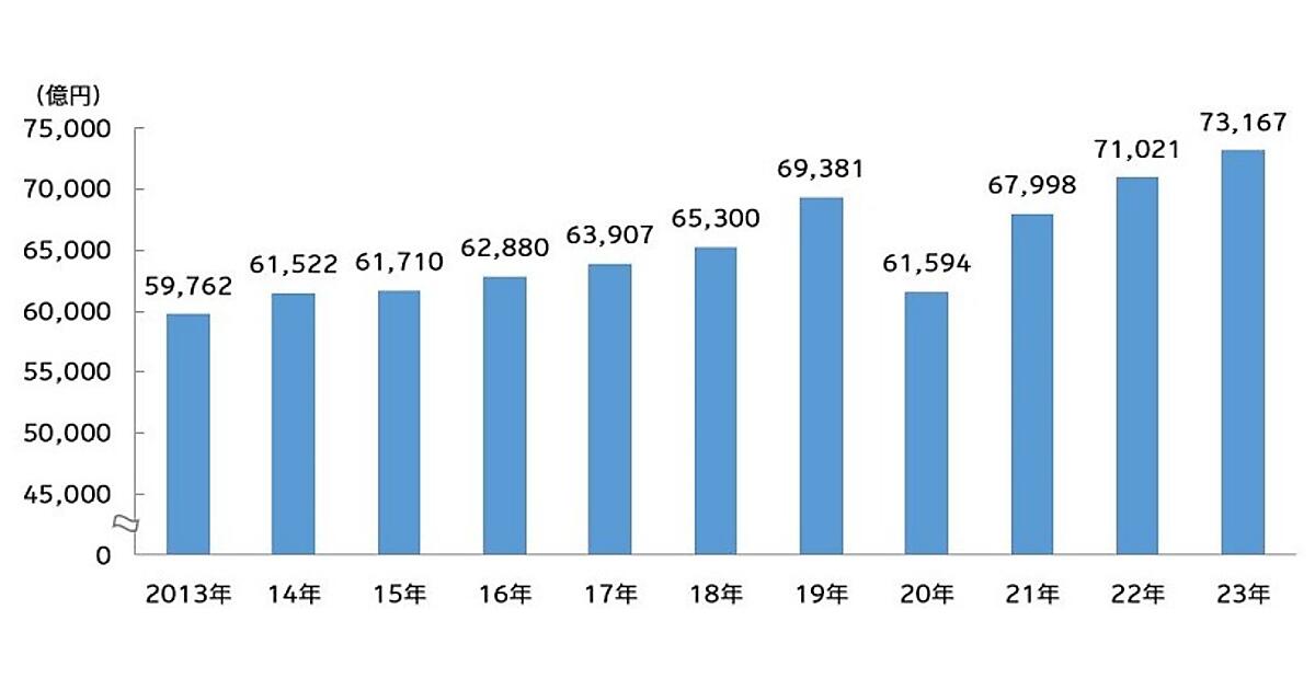 電通は、2023年の日本の総広告費を2月27日発表した。7兆3167億円(前年比103.0%)となり、前年に続いて過去最高を更新した。社会のデジタル化を背景にインターネット広告費が好調で、これも過去最高を更新し、広告市場の成長を後押しした。新型コロナウイルス感染症の5類感染症への移行に伴い、催事の増加や観光・旅行の活性化も成長に寄与した。