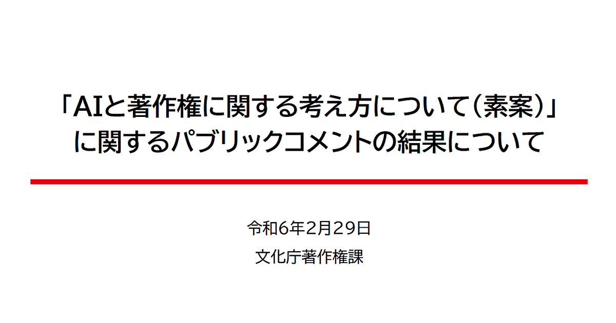 文化庁著作権課は、文化審議会の著作権分科会法制度小委員会が議論している「AI(人工知能)と著作権に関する考え方(素案)」に対するパブリックコメントの結果を2月29日、同日開催した同小委員会の会議資料として公表した。同小委員会は、同考え方の同日時点版を公開した。