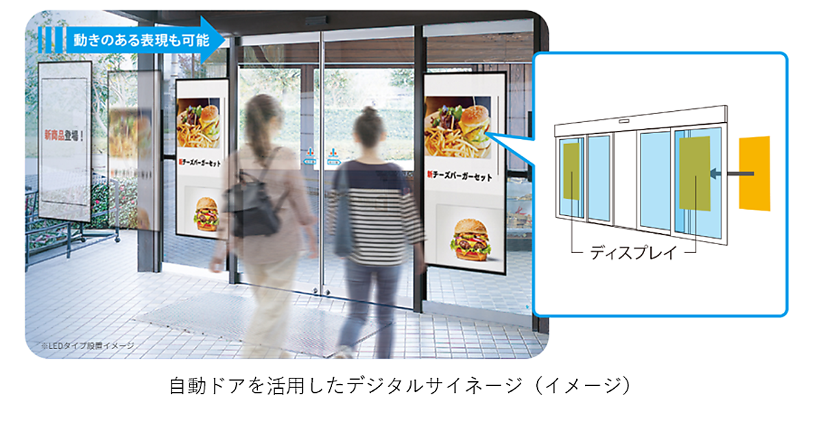 機械部品大手のナブテスコは、デジタルサイネージディスプレイ一体型自動ドアの販売を3月1日に始め、これを活用した広告配信サービスを4月から展開する、と3月1日発表した。自動ドアが新たな広告メディアになり、インパクトのある訴求が可能だという。商業施設や交通機関向けに自動ドア用デジタルサイネージディスプレイの販売も開始する。