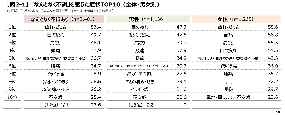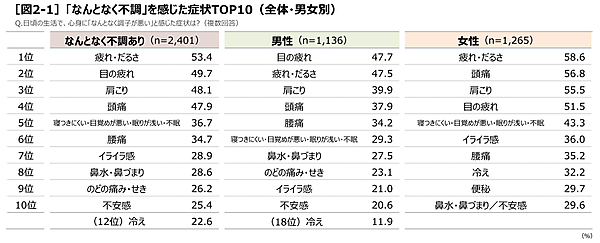 8割が自覚する「なんとなく不調」、男女とも前年より増加