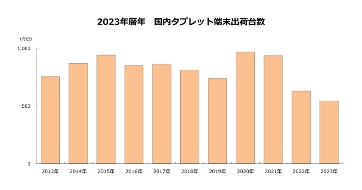 国内タブレット出荷台数、過去11年間で最少の544万台