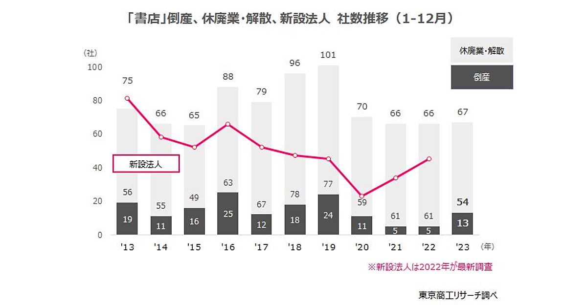 東京商工リサーチは、「書店」の倒産や休廃業・解散に関する調査を実施した。