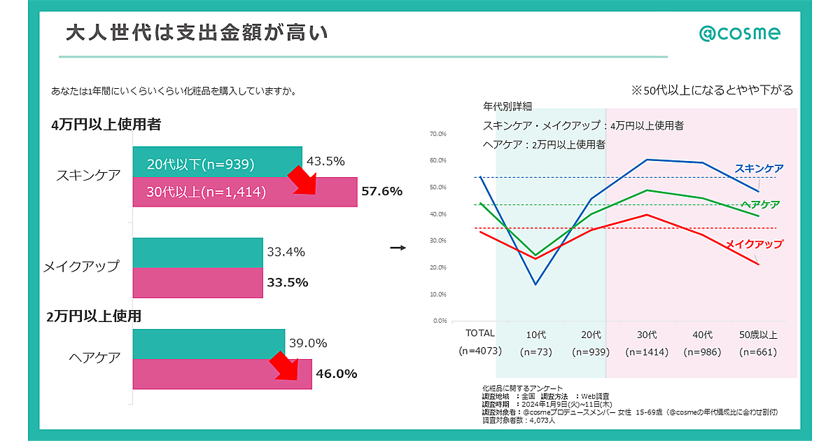 30代以上の大人世代、スキンケアに「年間4万円以上」が6割弱