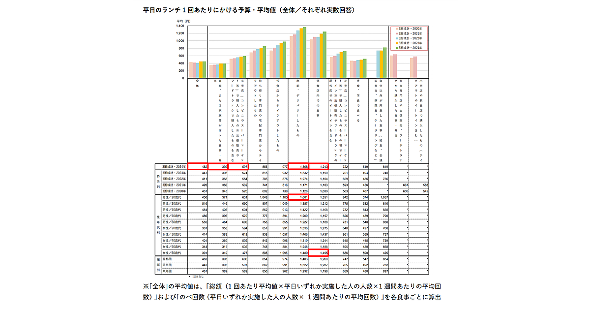 働く人の平日ランチ、全体平均は「452円」で過去最高額に