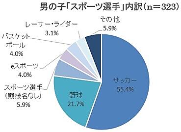 男の子の将来就きたい職業では、「スポーツ選手」が「警察官」を上回り4年ぶりに1位となった。コロナ禍が明けスポーツ機会が増えたこと、大谷翔平選手をはじめ有名選手の活躍がニュースになっていることが影響したようだ。競技の内訳では、「バスケットボール」のポイントが前年比で倍増(2.0%→4.0%)しているのが目立つ。