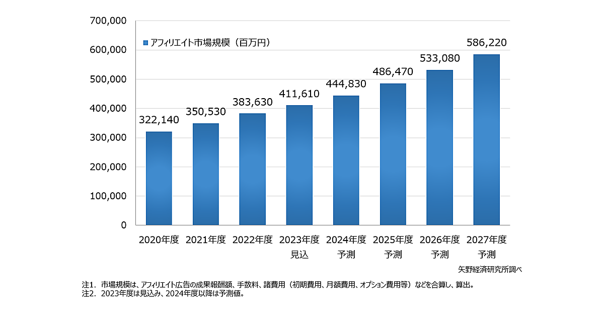 2023年度の国内アフィリエイト市場規模は約4,116億円の見込み。今後も着実に成長か【矢野経研調べ】