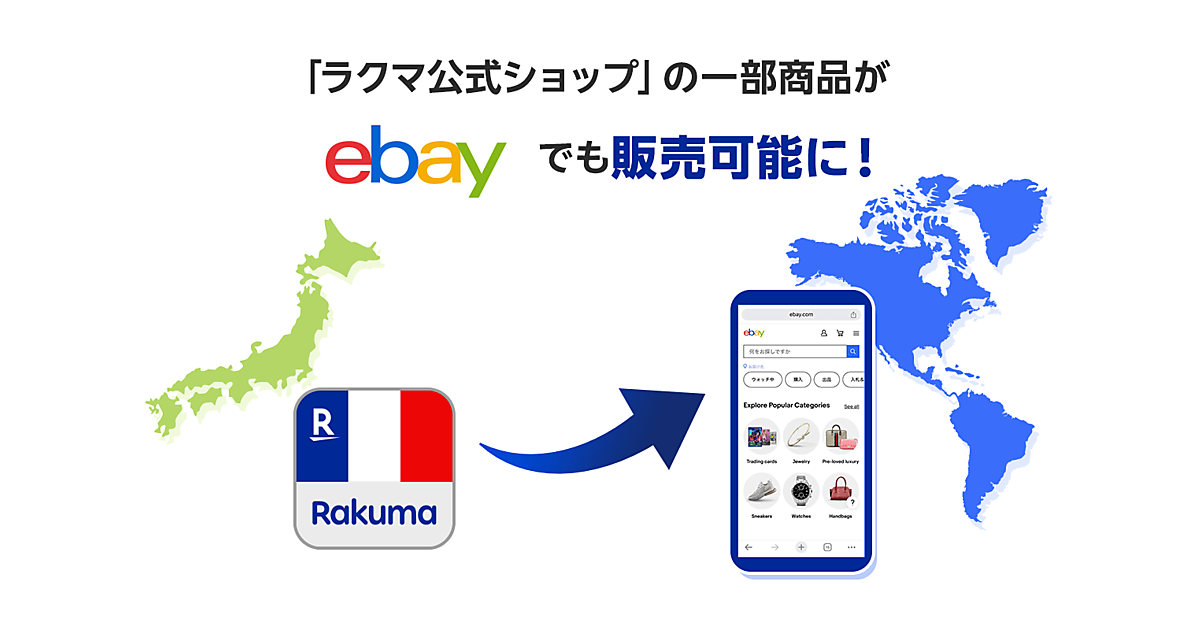 楽天グループは、フリマアプリ「楽天ラクマ」でリユース事業者が出店する「ラクマ公式ショップ」の一部出店者の商品を、EC大手の米国イーベイが運営する「eBay」に出品する試験運用を始めたと5月8日に発表した。米国サイト「eBay.com」を利用するユーザーは、ラクマ公式ショップに出品されている一部商品の購入が可能になる。楽天ラクマはeBayへの出品開始で、ラクマ公式ショップの販路拡大と出店者の海外販売促進を図る。