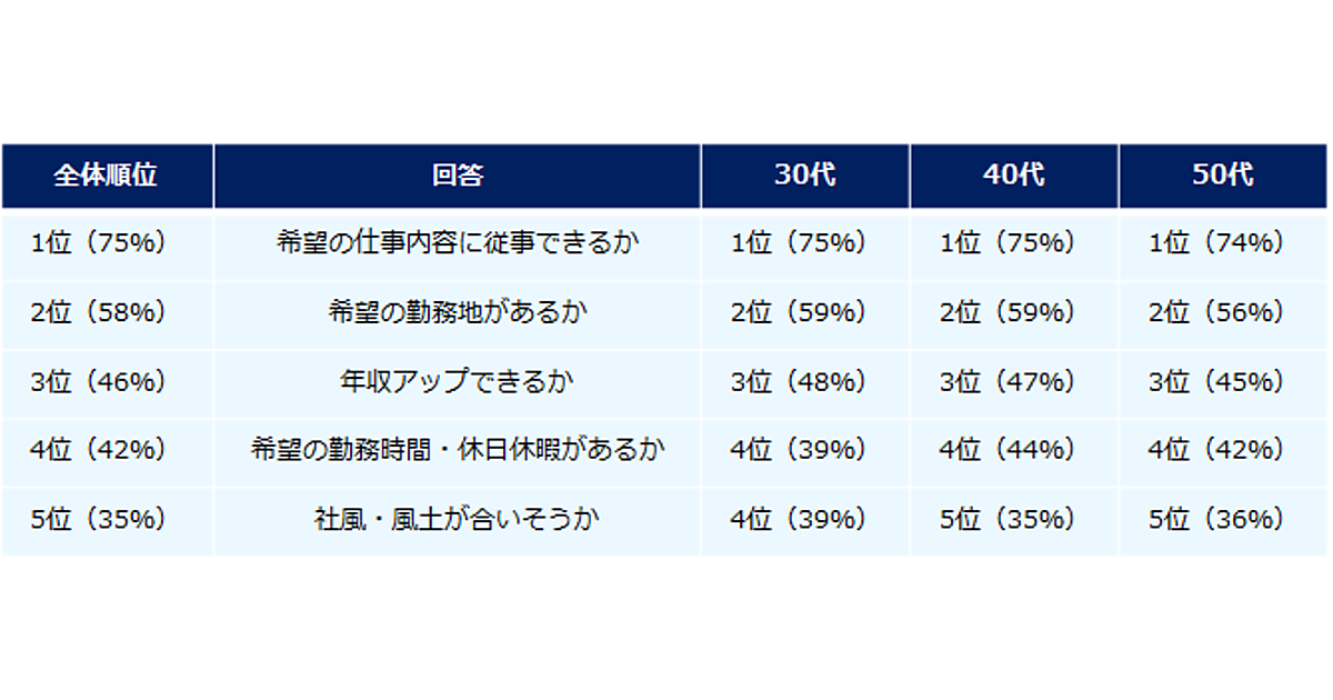 ミドル世代の転職軸は「希望の仕事内容に従事できるか」が最多