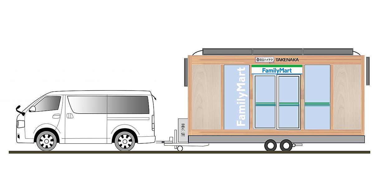 移動型無人トレーラー店舗は、竹中工務店と日立ハイテクの移動可能な工事事務所「牽引(けんいん)式オフグリッド型モバイルハウス」を発展させた。日立ハイテクの太陽光発電パネル、蓄電池、制御機器で構成する自立電源システムを備える。太陽光で発電した電気を蓄電池に充電して内部の空調に利用。衛星インターネットを搭載し、自立通信もできる。