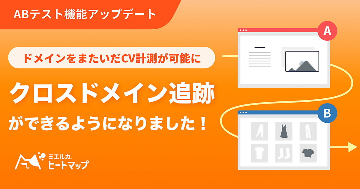 ABテストで設定した複数の案の中で、コンバージョンに最も効果的な案の正確な測定が可能になる。事前設定はドメインを入力してタグを設置するだけで、ゴールを設定する時に計測ドメインを選ぶことで、異なるドメインでのクリックやページの閲覧をゴールにできる。ミエルカヒートマップは2016年10月に提供を始め、累計2500社以上が導入した。