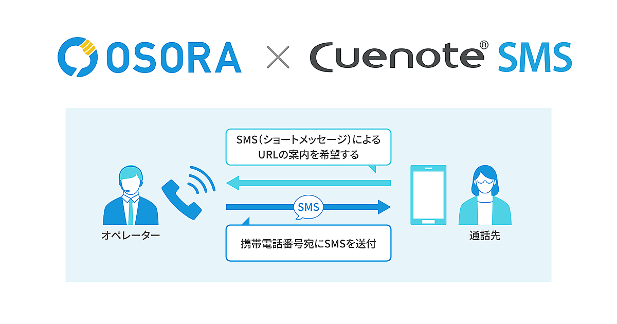 Scene LiveのOSORAは、電話業務を効率化するコールシステム。API連携でシステムの拡張性が高く、CRM(顧客管理)や他のツールと連携する。全通話録音やIVR(音声自動応答)、着信ポップアップ、分析機能などインバウンドに必要な機能を搭載する。今回の連携によって、Webサイトや申し込みフォームなど口頭での案内が難しい内容でも電話番号宛に即時にSMSを送れるので、オペレーターの負担軽減と顧客の利便性向上につながる。