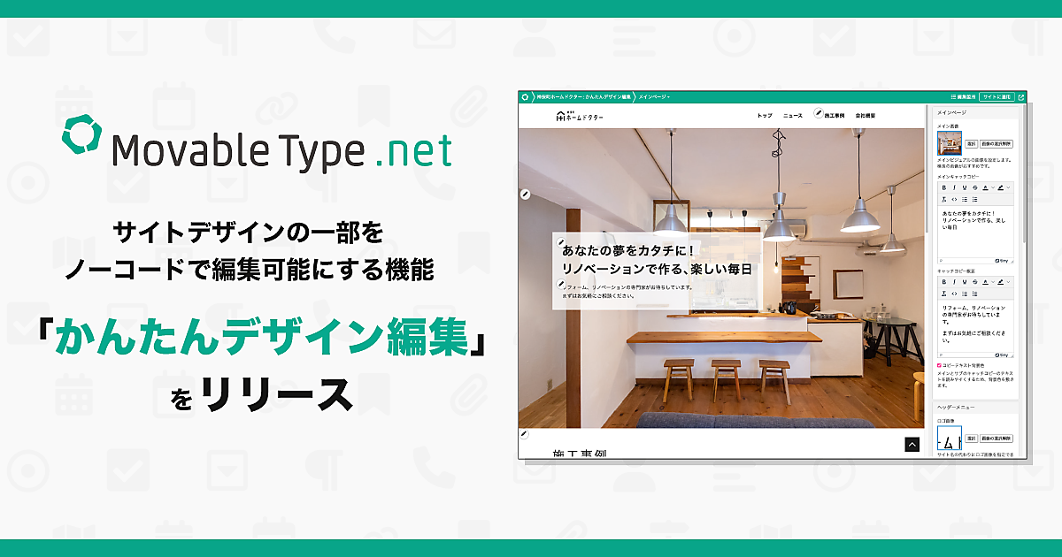 CMS(コンテンツ管理システム)・関連サービス事業のシックス・アパートは、同社のSaaS型CMS「MovableType.net」で、新機能「かんたんデザイン編集」の提供を6月11日に始めた、と同日発表した。サイトのデザインテンプレートの一部をノーコードで編集できるように設定可能な機能。MovableType.netの全てのプランで無償利用できる。